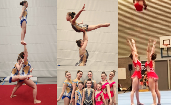 Op 12 en 19 maart vonden de eerste plaatsing wedstrijden acrobatiek plaats in Warnsveld en Rijssen. De teams van KEV hadden er super veel zin in om weer op de wedstrijdvloer te staan. Twee jaar lang heeft het seizoen door corona stilgelegen. Het was allemaal wel weer even wennen met al die wedstrijdzenuwen, maar ze hebben allen een goede stap gemaakt in het wedstrijdseizoen. Maar liefst 4 acro teams van KEV wisten een podiumplek te halen in de sterke deelnemersvelden. Vele teams zijn al goed op weg voor een plaats op het Oost Nederlands Kampioenschap. Op 2 en 9 april volgen de 2e en laatste plaatsingwedstrijden, waarna een ranking gaat bepalen wie er door mag stromen naar het ONK. Al met al geslaagde wedstrijden en op naar de volgende! Een 1e plaats voor Thomas Tempert met Teun Bekke Dsr. Een 2e plaats voor Nina Schoemaker, Floor Post met Liz van Dooren Ejr en Michelle Tempert met Feline Ibbenhorst Dsr. En een 3e plaats voor Noa Exel met Menoa Zwiers. 12 maart te Warnsveld: Nina, Floor en Liz mochten als eerste van start. Ondanks de zenuwen hebben de meiden een ontzettend strakke oefening neergezet. De elementen gingen super goed en de dans ging mooi gelijk. De meiden scoorde een score van 22.400. De strakke oefening resulteerde in een tweede plek! De meiden hebben het limiet gehaald. Het team hoort na de tweede plaatsingwedstrijd of zij het ONK hebben gehaald. Noa en Menoa waren als tweede aan de beurt. De meiden stonden te stralen op de vloer. Het enthousiaste en de zelfverzekerdheid straalde er vanaf. Op een paar kleine wiebels in de hurksteun na, stond er een perfecte oefening. De concurrentie lag erg hoog binnen dit niveau. Met een score van 24.040 behaalden de meiden een derde plek. Ook deze meiden hebben het limiet gehaald. Als laatste van de tweede wedstrijd mochten Tamar en Zoë de oefening laten zien. De dames begonnen sterk aan de oefening. Bij het vliegtuigje hadden de meiden helaas een tijdfout. De meiden hebben de oefening mooi weten af te maken. Ondanks de tijdfout wisten de meiden een score te halen van 20.280. Helaas geen podiumplek maar wel een super strakke oefening. In de middag mochten Michelle en Feline starten met hun oefening. Voor Feline was dit de eerste officiële acrowedstrijd. De meiden wisten een super nette oefening neer te zetten. Het team had geen fouten gemaakt waardoor ze eindigden op de tweede plek! Het team scoorde 22.100 punten waardoor ook zij het limiet hebben behaald. Sanne, Lynn en Eva hebben een mooie oefening laten zien aan de jury. Door een kleine individuele fout hebben de meiden helaas veel aftrek gekregen aangezien ze niet meer voldeden aan de eisen. Ondanks deze fout hebben de meiden de oefening met volle moed afgemaakt. De meiden hadden een score van 18.500! De volgende wedstrijd gaan ze knallen. Als laatste van de wedstrijddag mochten de heren hun oefening laten zien. De heren waren het enige herenteam van deze dag. Ook de heren wisten een mooie oefening neer te zetten. Met een score van 22.960 weten de heren het limiet te behalen. Thomas en Teun eindigden op de eerste plek. 19 maart te Rijssen: Vol zenuwen begonnen in de tweede ronde van de dag onze E junioren teams groepen en duo’s. Voor de meesten hun eerste wedstrijd en dat was best spannend. Merle, Amber en Yinthe mochten gelijk als eerste starten en hebben een goede oefening neergezet. De elementen gingen beter met opbouwen dan in de training waardoor ze wat eerder klaar waren op de muziek. Ze haalden een uitstekende 4e plaats met het cijfer 20.57. Voor Karen, Dana en Lola geldde een beetje hetzelfde. Ook zij draaiden een goede oefening met her en der een foutje en waren eerder klaar dan de muziek. Maar ze hebben alles gedaan wat ze konden. Een keurige 6e plaats met het cijfer 19.08 Ze hebben heerlijk genoten. Het laatste team in deze categorie van KEV waren Florien, Imre en Cato. Ze hebben het goed gedaan waar het artistiek cijfer iets tegenviel. Ook hier af en toe een foutje, maar er alles aan gedaan om alles eruit te halen. Voor hun een mooie 5e plaats met 20.37 punten. In de 2e ronde was het ook de beurt aan de senioren E. Nicky en Yfke hebben geen ideale voorbereiding gehad en het belangrijkste van de dag was toch wel het genieten van elkaar en de acrobatiek. En dat hebben ze zeker gedaan. Alle elementen zijn voltooid, met her en der wel kleine foutjes, maar wetend dat ze alles uit de kast hebben gehaald. Voor hun een 6e plaats met 19,66 punten. Zara en Shania kwamen ook in deze categorie uit. Waar normalier de bovenpersoon vol van zenuwen zit, was het in dit geval aan de onderpersoon. Gelukkig wist ze die te baas te houden en hebben een goede oefening neergezet! Keurig gedaan met 1 tijdfoutje. Bij de junioren E duo’s stonden Isa en Maud aan de start. In een groot en sterk deelnemers veld kwamen ze op een 8e plaats met 19,66 punten. Zonder tijdsfouten hebben ze een goede oefening neergezet. In ronde 3 gingen we verder met Madelein, Lieke en Mila. De dames deden het goed. Ze hadden geen tijdsfouten in de oefening, maar het ging zo vlug dat ze aan het einde wat muziek over hadden. Technisch zag het er netjes uit en ze kregen het cijfer 20.33 waarmee ze op een 6e plek uitkwamen. Nienke, Maaike en Rosalijn overtreffen zichzelf een beetje. Erg goed gedaan en dat werd beloond met het cijfer 21.37. Hiermee hebben ze hun limiet in ieder geval gehaald. In de laatste ronde mochten Fleur en Linde in de D senior duo categorie deelnemen. Ze hadden er erg veel zin in en ook in de trainingen gaat het erg goed. Helaas moesten ze een element vroegtijdig afbreken waardoor deze niet is geteld en ze hiermee vele eisen missen. Maar ze hebben de oefening goed afgemaakt en hielden een goed artistiek cijfer over. Ook technisch wisten ze nog aardig goed te scoren. Maar door de eisen aftrekken eindigden ze op een gedeelde 7e plaats met 14,81 Ook bij Monique, Bianca en Imke zat het niet mee in de oefening. Ze hadden een val en wisten enkele elementen niet goed te voltooien wat aardig in de aftrekken