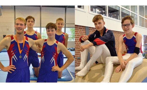 Zaterdag 11 juni werden de laatste wedstrijden gehouden voor de heren Turners van KEV. Op de 6 onderdelen mochten de heren proberen hun oefeningen goed te volbrengen en mooie scores te behalen. De ochtend begon met de turners Rick Schoemaker en Boaz Lemans. Ze hebben beide een goede wedstrijd geturnd. Voltige is een heel lastig onderdeel, maar rek en ringen gaat bij de heren altijd goed. De heren Thomas Valk, Floris Ter Steeg, Mees Bekke en Leon Bos lieten in de 2e ronde hun turnoefeningen aan de jury zien. Er is heel wisselend geturnd. Bij iedereen was er wel een onderdeel dat uitstekend ging en een onderdeel waar het minder ging. Maar met nieuwe elementen in de oefeningen zijn we allemaal uitstekend tevreden. Leon liet het publiek applaudisseren door in de reuzendraai door nood een mooie halve draai in de handstand te turnen om vervolgens weer een reuzendraai te turnen. Leon mocht een verdiende zilveren medaille in ontvangst nemen. Het was weer een gezellige en sportieve dag!