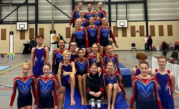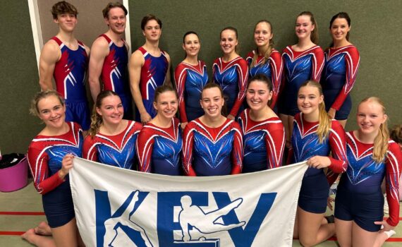 Afgelopen zaterdag, 16 november, vond de tweede landelijke wedstrijd van het nieuwe springseizoen plaats. KEV Vriezenveen reisde met drie juniorenteams af naar Nijverdal, waar elk team streed voor een plekje op het NK groepsspringen die op 14 december zal plaatsvinden op Urk. Het eerste team dat in actie mocht komen kwam uit in het A-niveau en bestond uit de dames Britt Dasselaar, Jasmijn Engberts, Yfke Veneklaas, Jitske van der Vegte, Nicole Lemans, Benthe Fokke en Emma Nuis. Dit team is al drie jaar een team dat de afgelopen jaren heeft bewezen thuis te horen in het A-niveau. Afgelopen zaterdag werd dat wederom bevestigd. Met strakke series op alle drie de toestellen hebben zij laten zien dat zij thuishoren op het NK groepsspringen. Het team heeft zich dan ook op alle onderdelen weten te plaatsen. Zelfs als eerste op minitrampoline en pegasus met een groot puntenverschil ten opzichte van de nummers 2! Op het NK zal het team nog versterking krijgen van Lian Dasselaar. In diezelfde ochtend kwam er nog een team uit in het A-niveau. Het mixteam, bestaande uit Danique Blaaupot, Annemiek Bröckotter, Teun Bekke, Menoa Zwiers, Sven Lemans, Hidde Goerree, Lynn Jansen en Feline Ibbenhorst. Dit team is dit seizoen voor het eerst samen. Alle springers uit dit team deden afgelopen zaterdag voor het eerst mee in het A-niveau. Daarnaast is de helft van dit team doorgestroomd vanuit de jeugdcategorie. Een grote stap voor de springers dus! Het team begon op minitrampoline en maakte hier helaas te veel foutjes om door te stromen naar het NK. Hoewel dit geen sterke start van de wedstrijd was, heeft het team zich goed herpakt op het onderdeel airtrack en hele nette series laten zien. Ondanks de nette series was het niet genoeg om zich direct te kunnen plaatsen. Het team sloot hun wedstrijd af op het onderdeel pegasus, waarbij zij hebben laten zien wat zij waard zijn. Met nette sprongen en de focus op nog één kans heeft het team zich als derde weten te plaatsen voor het NK! De dames en heren hebben laten zien dat zij qua springniveau mee kunnen komen met de (ervarings)teams van andere verenigingen en dat biedt hun perspectief om te gaan groeien de aankomende jaren! Tot slot is het mix B-team ook in actie gekomen. Het team bestaat uit Bob Dekker, Hidde Roelofs, Danique Bramer, Louise Roelofsen, Zoë Smoes en Yinthe Slettenhaar. Helaas door een blessure kon Roos Wessels deze wedstrijd niet meedoen, maar ze heeft het team enorm gesupport op de wedstrijd! Ook dit team deed voor het eerst mee aan een landelijke wedstrijd in deze samenstelling, waarbij ook de meerderheid is doorgestroomd uit de jeugd en het C-niveau. Ook voor deze springers dus een enorme stap! In een groot deelnemersveld heeft het team zich moeten manoeuvreren om een plekje te veroveren op het NK. Het team begon op pegasus en maakte hier helaas te veel foutjes om door te stromen naar het NK. Net als het andere mixteam heeft ook dit team zich te weten herpakken op airtrack door nette series te laten zien. Ondanks dat zij een goede wedstrijd hebben gehad op dit onderdeel was het helaas net niet genoeg om zich direct te kunnen plaatsen. Ze staan momenteel eerste reserve op dit onderdeel. Het team sloot hun wedstrijd af op minitrampoline en hier hebben ze prachtige sprongen laten zien. Ze hebben zich hier dan ook als derde mogen plaatsen! Wat zijn ze hier blij mee! Ook voor dit team geldt dat zij hebben laten zien dat zij thuishoren in dit niveau en dat motiveert om nog meer te gaan groeien in de aankomende jaren! Al met al was het wederom een hele succesvolle dag voor de teams van KEV. Elk team heeft een plekje op het NK weten te veroveren, dus KEV gaat met 6 teams sterk naar het NK groepsspringen. Het trainersteam, bestaande uit Sanne Grol, Eline van Dijk, Iris Exel, Laurien Verheijen, Yvar Neep en Marleen Haandrikman, is dan ook ontzettend trots op al deze springers! Ze gaan zich goed voorbereiden voor het NK op 14 december op Urk.