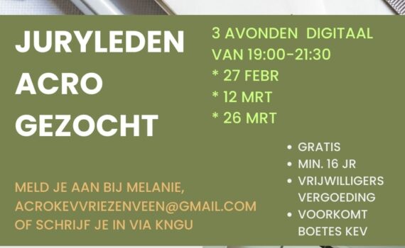 Afgelopen weekenden, 20/21 en 27/28 januari, waren voor de meeste teams van KEV de 1e vier plaatsingswedstrijden! En voor sommige sporters zelf de aller eerste acro wedstrijd ooit Op 20 januari mochten Megan & Amber en Djennah & Merle het spits afbijten in Ede in de categorie E senior. En wat deden ze dat goed! In de middag was het de beurt aan onze D+ teams Michelle & Caydence en Maud & Lieke. Deze meiden lieten allebei 2 super oefeningen zien en sloten de dag ook af met mooie medailles. Zilver voor Megan & Amber, Merle & Djennah eindigden 4e. Zilver voor Maud & Lieke, Brons voor Michelle & Caydence Zondag 21 januari was het de beurt aan Imke & Lot, ons E jeugd duo. Voor de meiden een spannende dag met hier en daar een klein foutje. S’ middags mochten Thomas & Roos de vloer op! Sinds kort een duo en wat ging het goed. Ook zij namen een medaille mee naar huis! Imke & Lot 4e, Goud voor Thomas & Roos 27 januari was een drukke dag voor KEV in Hardenberg. In de ochtend was het tijd voor Hanne & Kaylinn, Marlou & Lina en Jade & Lobke. Zij komen uit in de categorie E junior. De 3 teams lieten goede oefeningen zien en mogen trots zijn! In wedstrijd 2 gingen we kijken naar Karen, Dana & Lola(E senior), Tamar & Zoë (D junior) en Noa, Menoa & Fleur (D junior). Er werden weer prachtige oefeningen gedraaid. Tot slot was het tijd voor de D teams. Isa & Maud, Tara, Meike & Roos en Monique, Bianca & Jolie. En wederom waren de oefeningen goed en gingen er weer medailles mee naar huis. Hanne & Kaylinn 4e, Jade & Lobke 6e, Marlou & Lina 7e, Tamar & Zoë 4e, Noa, Menoa & Fleur 5e, Karen, Dana & Lola 6e, Isa & Maud 7e, Zilver voor Tara, Meike & Roos, Monique, Bianca & Jolie 4e En als laatst van dit weekend was het de beurt aan 2 E senioren teams op zondag 28 januari. Madelein, Lieke & Evi en Florien & Cato. Allebei de teams lieten geen fouten zien in de oefening en kregen goed punten! Zilver voor Florien & Cato, Madelein, Lieke & Evi 5e Het waren geslaagde weekenden voor KEV en de trainsters zijn trots!
