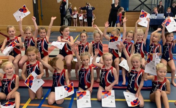 Op zaterdag 26 november hadden de meiden van niveau 6 een turnwedstrijd in Nieuwleusen. Voor vele meiden hun alle eerste echte turnwedstrijd. De meiden turnen in een team en strijden tegen andere clubs. Zij laten oefeningen zien op de brug, vloer, sprong en balk. In de ochtend begon het 1e team. Dit team bestaat uit: Aveline, Eva, Imke, Nina en Noa. De meiden hadden er erg veel zin in. Ze begonnen met het toestel vloer. Er zijn mooie oefeningen geturnd. Daarna kwam sprong, een toestel waar de meiden erg sterk op zijn. Dat was ook wel te zien in de score. Aveline en Noa waren zelfs op dit toestel 1e. Vervolgens gingen ze naar brug. Ze lieten mooie oefeningen zien en zijn trots op de scores. Als laatste toestel kwam balk. Een spannend toestel. De oefeningen gingen goed en de meiden zijn tevreden met de punten. Nina werd 1e op dit toestel. In totaal zijn de meiden 4e geworden. Een super knappe prestatie. In de middag was het de beurt aan team 2. Dit team bestaat uit: Djennah, Lott, Louise en Noella. De meiden waren best wel zenuwachtig en dat kon je ook goed zien. Zij begonnen ook bij vloer. Het eerste toestel en best wel even spannend. De meiden lieten mooie oefeningen zien en gingen met een tevreden gevoel door naar sprong. Het toestel wat de meiden erg leuk vinden. En wat sprongen de meiden goed. Djennah werd op dit toestel 1e en Lott 2e. Super knap! Daarna kwam brug. Een toestel wat de meiden best wel lastig vinden. De oefeningen ging goed en de meiden mochten naar het laatste toestel de balk. Op de balk moeten de meiden ook een koprol uitvoeren. Die vinden ze best wel lastig en de nodige spanning was wel te merken. Maar desondanks waren de meiden blij met dit toestel. In totaal zijn deze meiden ook 4e geworden. Trainster Iris en assistentes Tara en Noa zijn zeer tevreden en super trots op deze meiden. Op naar de volgende wedstrijd!