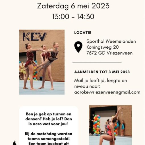 2x goud, 1x zilver en 1x brons Afgelopen zaterdag werd in Steenwijk de Acro Go-cup van Gelderland en Overijssel gehouden. De teams […]