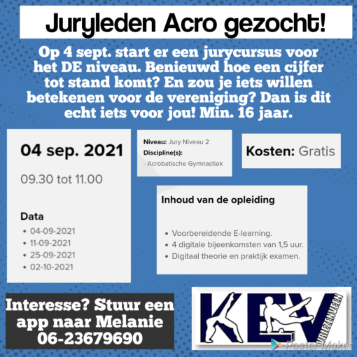Vind jij het leuk om salto’s te maken met een trampoline, over een toestel of zelfs op de vloer? Kom op 10 februari een training meedoen met de C-springgroep bij KEV!